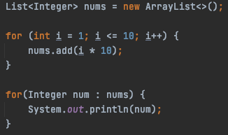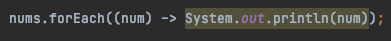 nums 의 forEach 메소드에 람다식을 전달하면 더 간결하게 코드를 작성할 수 있다