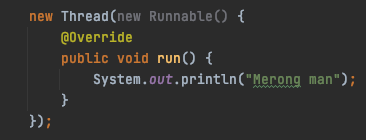 아래는 무명 클래스(Anonymous Class) 를 이용해 Thread 의 생성자로 넘겨주었다
