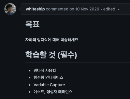 이번주 과제의 주제는 람다식이고 자세한 내용은 아래와 같다