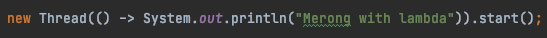 하지만 람다식을 Thread 클래스의 생성자로 넘겨주어도 코드는 간단하게 만들면서 같은 결과를 낼 수 있다